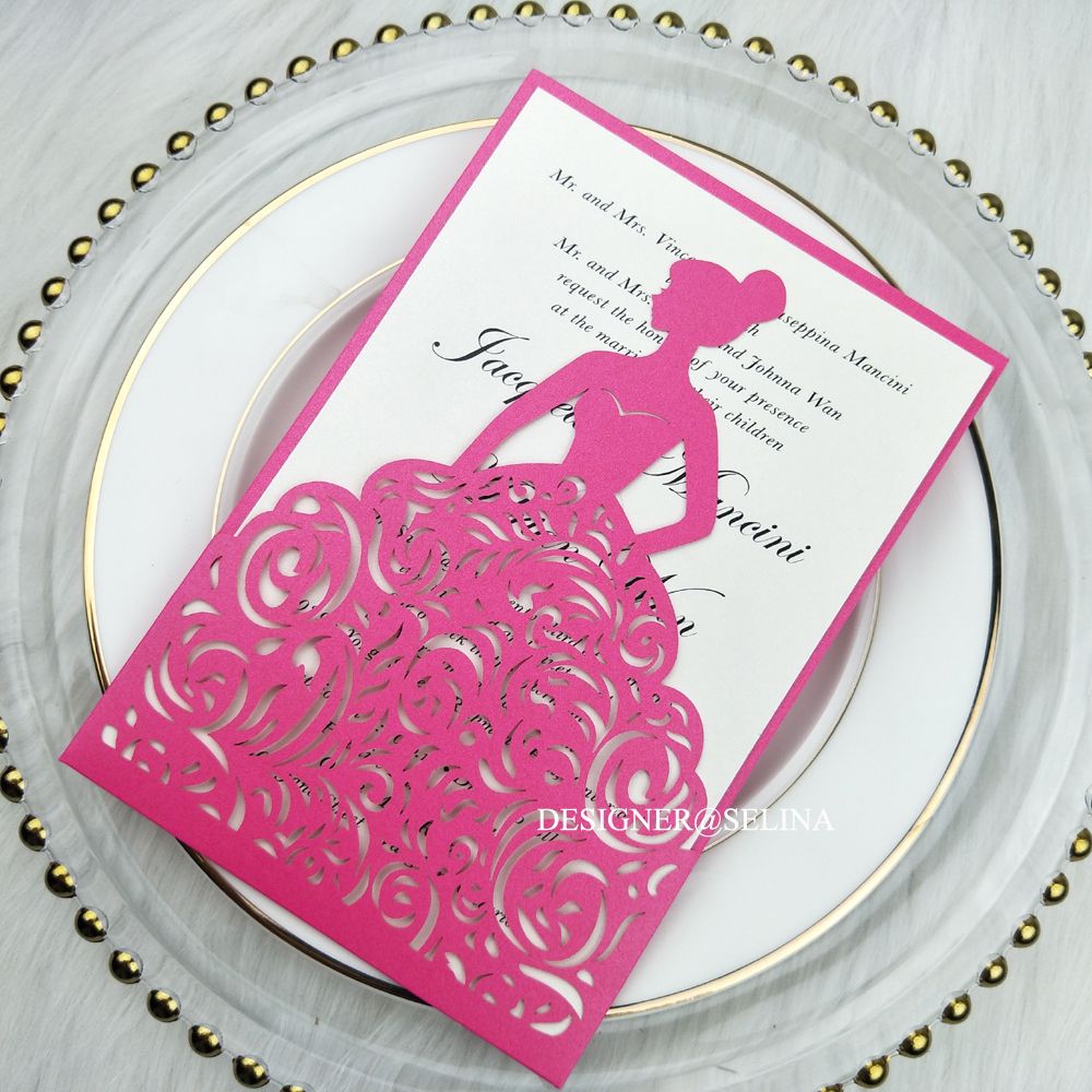 20 Color Wedding Invitations Laser Cut Princess Invitation Cards For Bridal Shower Hollow Quinceanera Invites